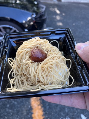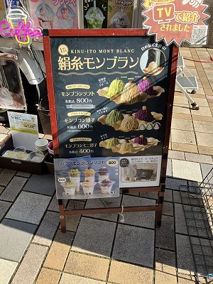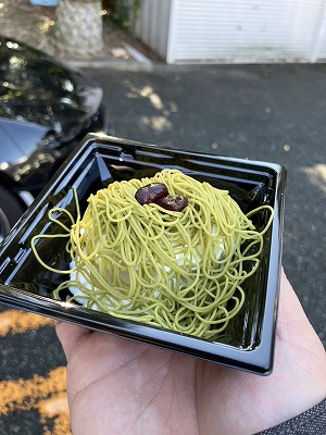 ほそーーーーい (1ミリ!!) モンブランをお団子の上にたっぷりと…これは絶対並ぶべきですね😋